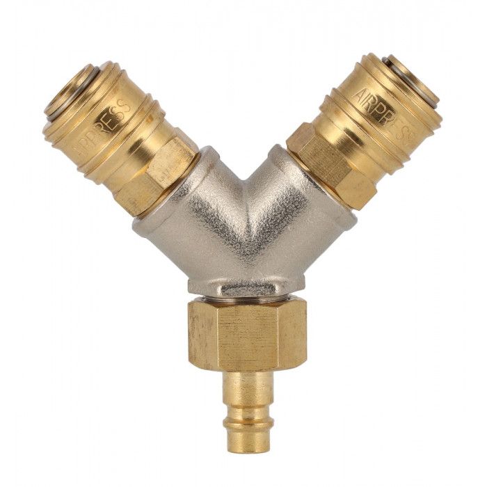 Y-delingskobling 1/2" 2x kvindelige eurokoblinger og han-euro stiknippel